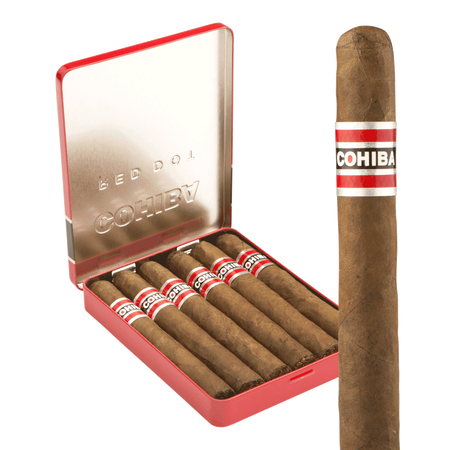 Handmade in the Dominican Republic, this miniature classic features a pristine, oily **African Cameroon wrapper** that imparts distinctive sweet spice and creamy texture. It encases an Indonesian binder and 100% pure Dominican long-filler tobaccos (including aged Piloto Cubano varieties), creating the perfectly balanced blend that has made the Cohiba Red Dot a timeless Dominican icon — now in a pocket-sized 4.19 x 34 format perfect for spontaneous enjoyment.