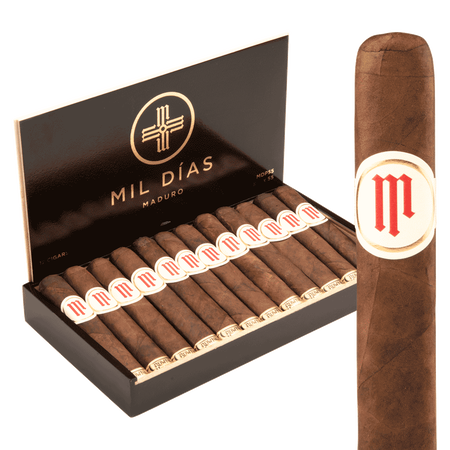 Hand-rolled in the Dominican Republic at Tabacalera de García, this exclusive limited-edition features an oily **Connecticut Broadleaf Maduro wrapper** for deep sweetness and robust earth. It encases a **Dominican binder** and premium aged **Dominican** and **Nicaraguan long-filler** tobaccos, creating the masterful blend that defines the Mil Días Maduro series as a celebration of time, patience, and exceptional craftsmanship under Jon Huber’s vision — presented in perfect box-pressed format for enhanced flavor concentration and luxurious mouthfeel.