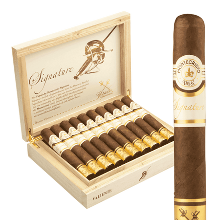 Our staff has consistently found the Espada by Montecristo Signature Valiente to be one of the most powerful and refined toros in the Espada lineup. Handrolled in Nicaragua at the AJ Fernandez factory, the Nicaraguan Corojo wrapper delivers upfront richness and spice on the cold draw, backed by a Nicaraguan binder and aged Nicaraguan long-fillers. When smoked, the first third opens boldly with roasted espresso, black pepper, sweet leather, and dark chocolate, creating a full-bodied introduction with creamy texture and voluminous smoke. By the second third, the profile transitions masterfully, mellowing the pepper into balanced dark cocoa, toasted nuts, caramelized oak, and refined earthy sweetness while the burn remains cool and even. In the final third, it finishes strong with concentrated sweet dark chocolate, lingering coffee roast, and smooth spice, burning steadily to a solid nub with firm ash hold and no harshness. A perfect showcase of Nicaraguan puro excellence in a versatile toro format.
