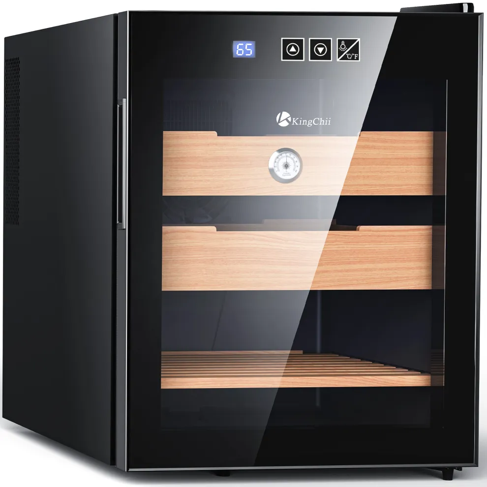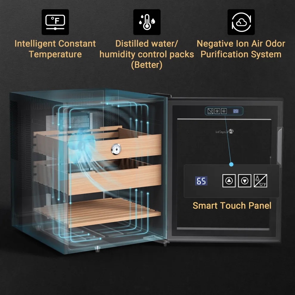 • 【360° Air Circulation & Frost-Free】: The 360° circulation system ensures even airflow, maintaining consistent temperature and humidity throughout the unit for optimal cigar storage. Keep a watch on humidity levels with the built-in Hygrometer (Accuracy: ±5%RH)