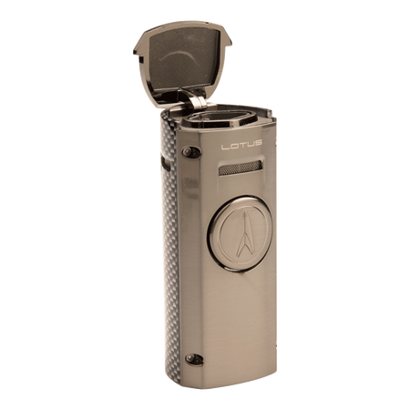 Grab yourself a Lotus Minister series lighter today and discover why these are consistently among the fastest–selling accessories on our site. This stunning gunmetal finish with a silver carbon fiber accent houses an extra-large fuel tank and a diamond-shaped, quad flame torch which cuts through wind and rain. Effective at more than two miles above sea level, the Minister is your companion for wherever the mood may strike. With a fold-out cigar punch, the Minister is part Swiss army knife and part essential smoking companion. Get yours today before they’re all sold out. Most aficionados don’t leave home without at least one at arm’s length.