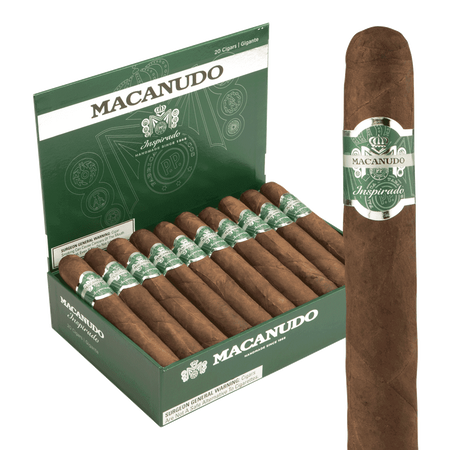 Our staff has found the Inspirado Green Gigante to be one of the most consistently enjoyable large-format mild-to-medium cigars in the Macanudo family—its generous proportions showcase the blend’s signature smoothness and fresh profile while the expert Dominican rolling ensures flawless performance and cool, even combustion throughout. The silky, golden **Ecuadorian Connecticut** wrapper provides subtle sweetness and finesse right from the cold draw. When smoked, the **first third** opens gently with lively **citrus zest**, **fresh cedar**, **sweet cream**, and hints of **white pepper**, creating a creamy, medium-bodied draw with abundant smoke and refreshing brightness. By the **second third**, the profile transitions smoothly, deepening the **creaminess** while revealing **toasted almonds**, **light vanilla**, **green apple**, and subtle **hay** notes—the large 60-ring gauge keeps the burn remarkably cool and consistent with luxurious output. In the **final third**, it finishes clean and balanced with lingering **sweet cream**, **cedar**, and a soft **citrus** echo, burning evenly to a solid nub with impeccable ash hold and zero harshness—making this one of the best large-ring mild-medium options for relaxed, flavorful indulgence.