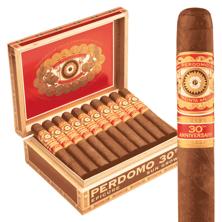 The 30th Anniversary Sun Grown Epicure is a strictly limited commemorative release featuring an Ecuadorian Sun Grown wrapper over Dominican binder and aged Dominican fillers. This milestone edition celebrates three decades of Perdomo excellence, delivering layered notes of cedar, cocoa, leather, nuts, and sweet spice in the generous 6 x 54 epicure toro — making it a collector’s favorite for its extended enjoyment, refined elegance, and historic significance.