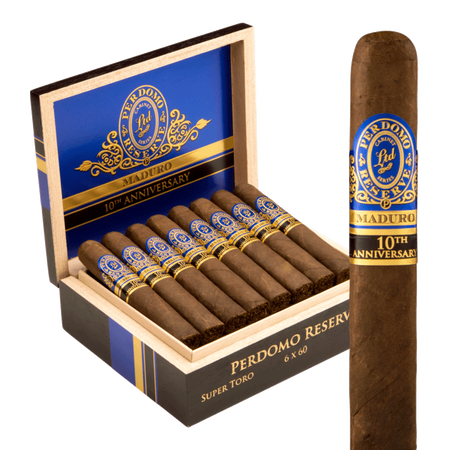 Perdomo Medium-Full Balanced Reserve 10th Anniversary Box-Pressed Maduro Super Toro Dominican Connecticut Broadleaf Maduro 6 x 60